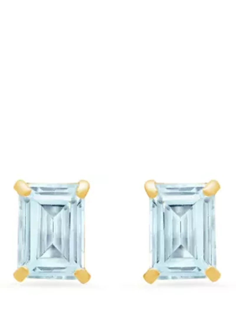 14k White Gold Solitaire Emerald-Cut Birthstone Stud Earrings