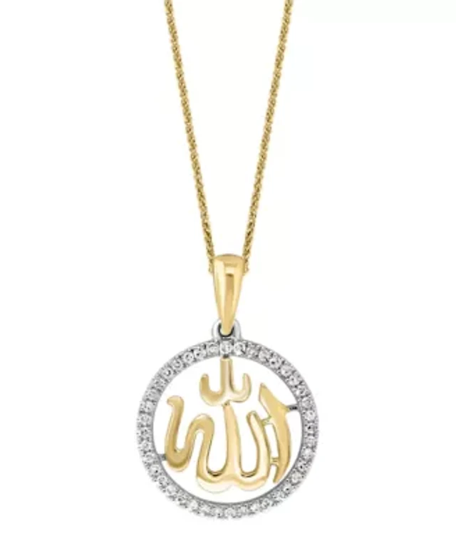 14K Yellow And White Gold Diamond Allah Pendant With Chain