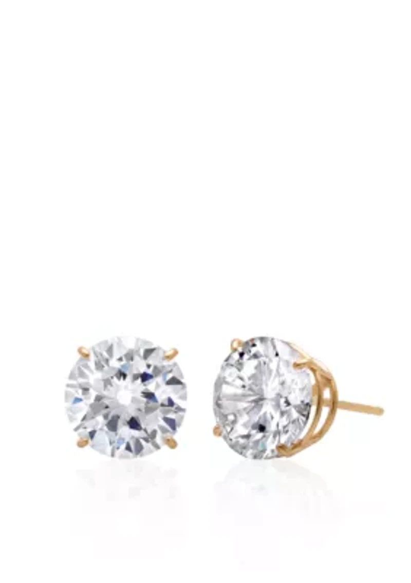 14k yellow gold studs feature 8.00 ct. t.w., 10mm round cubic zirconia. Prong setting 2 Cubic Zirconia Made In the USA Care Clean with a soft bristle brush or cloth and warm soapy water.