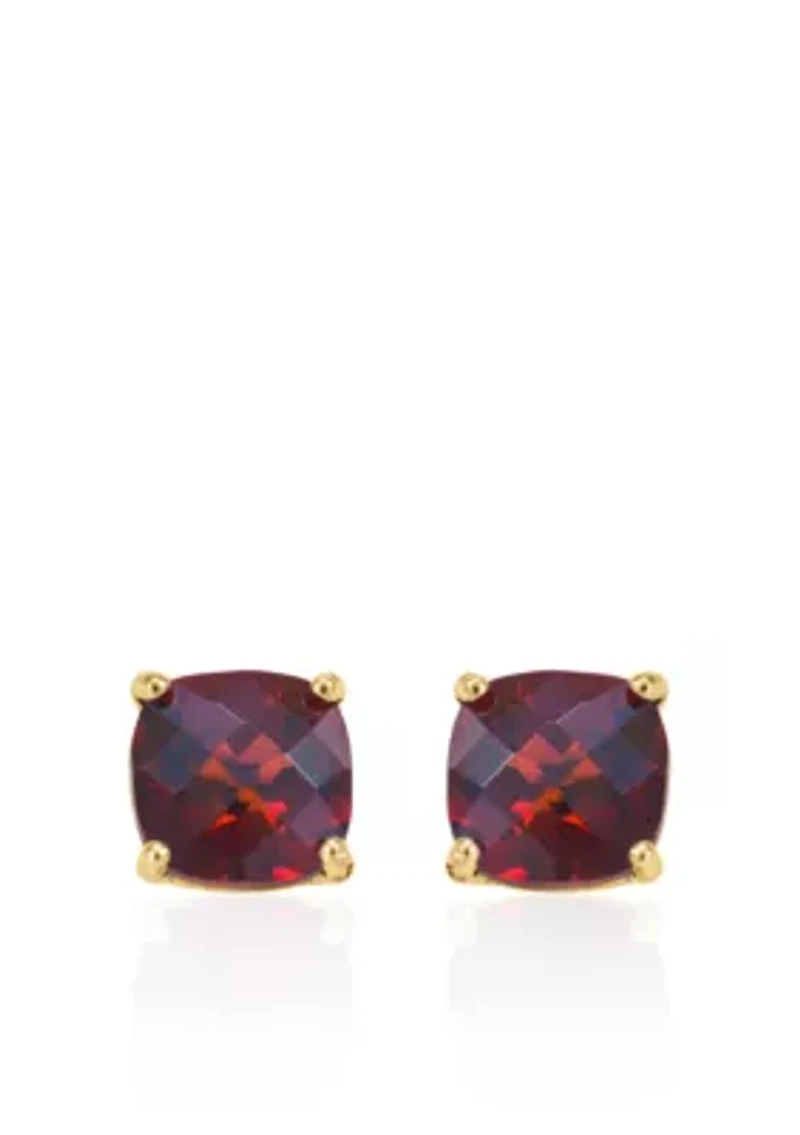 14k white gold stud earrings feature 2.00 ct. t.w. cushion garnets and measure 6mm x 6mm. Almost all gemstones have been treated to enhance their color. Clean with a soft bristle brush and warm soapy water. Use gold polishing cloth on gold items. Domestic Prong Setting 2 Garnets Domestic