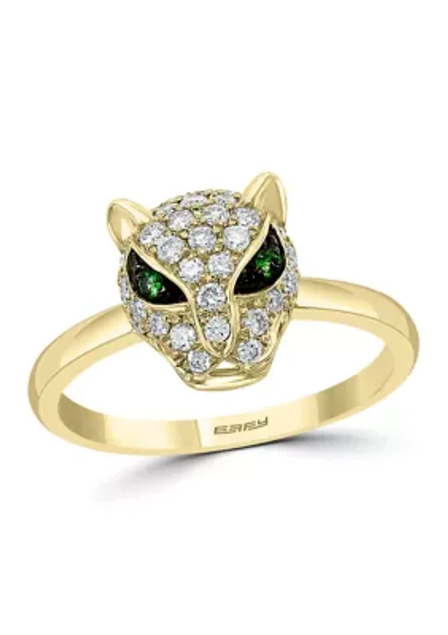 Effy Collection Diamond (1/8 ct. t.w.) and Tsavorite Accent in 14k Yellow Gold