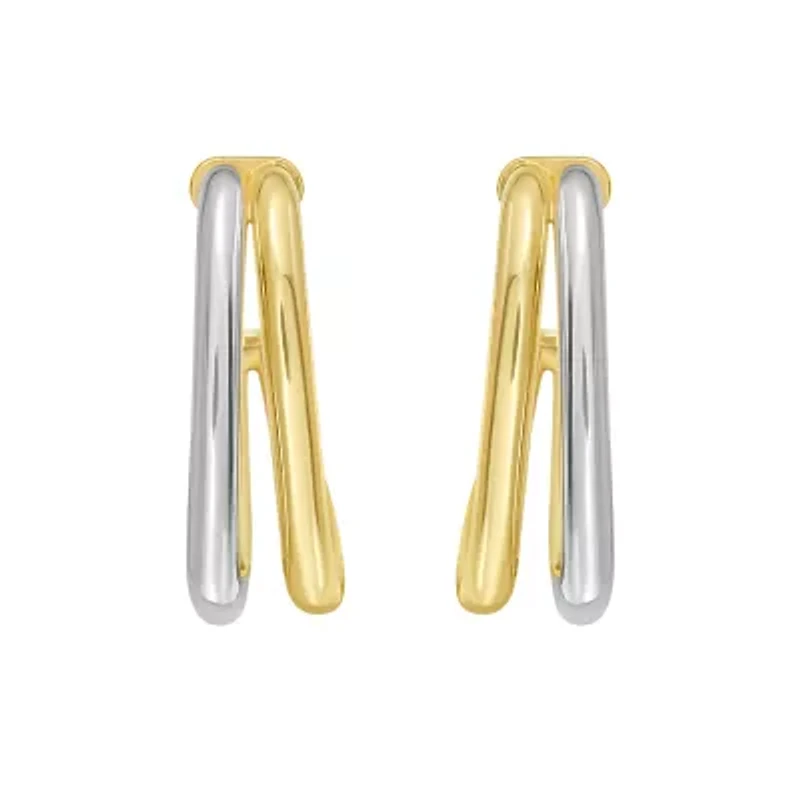 Bold Look For a Tri Color Earring Post back Polished finish Italy Imported Belk Exclusive Product Specifications 17mm(L)x5.3mm(W)x1.8mm(T)x16.7mm(D) Material & Care 14Kt Gold Metal, Gold Use gold polishing cloth on gold items.