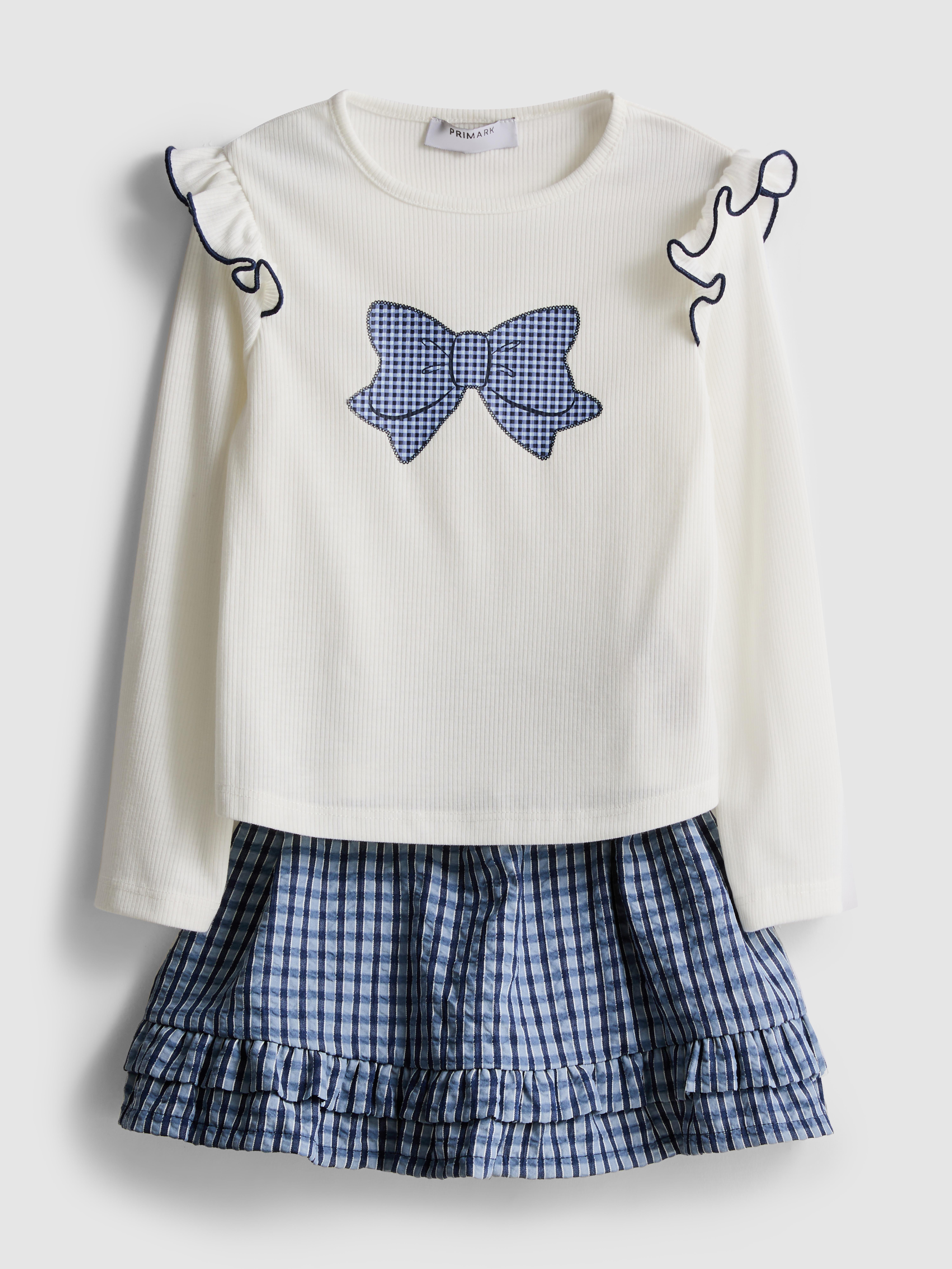 Girls Blue 1.5-8yrs | Bow Long Sleeve T-Shirt and Skirt Set