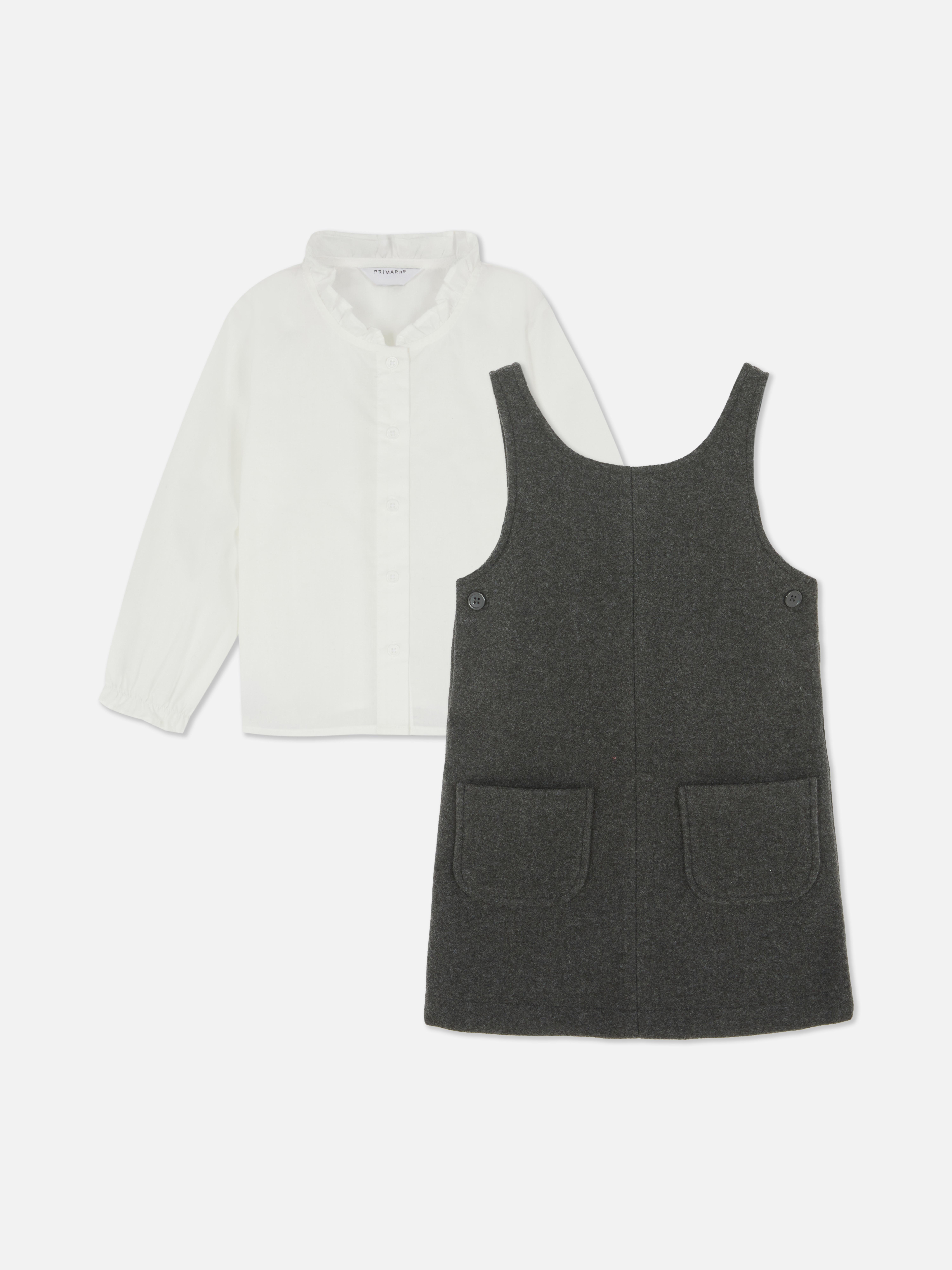 1.5-8yrs | Ruffle Collar Blouse and Pinafore Dress Set