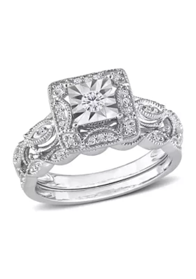 1/5 CT TW Diamond Vintage Bridal Set Sterling Silver