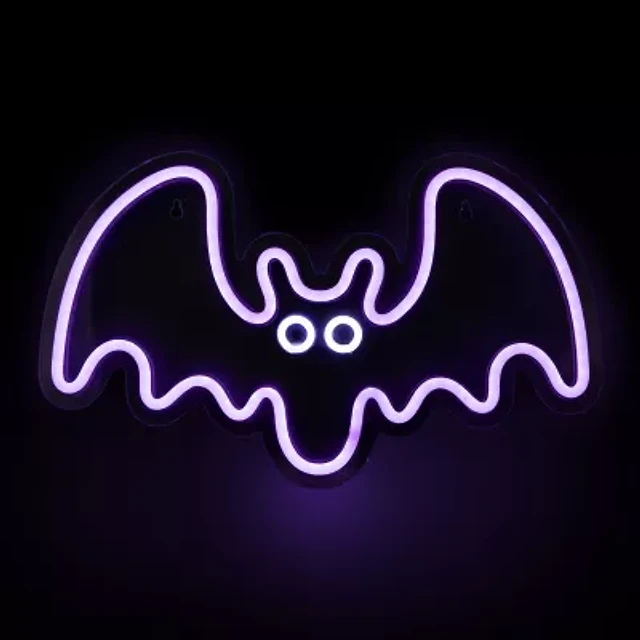 15'' Purple LED Lighted Neon Style Purple Bat Halloween Window Silhouette