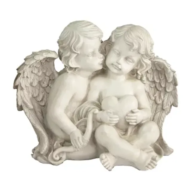 16'' Sitting Cherub Angels with Bow and Heart Outdoor Garden Statue