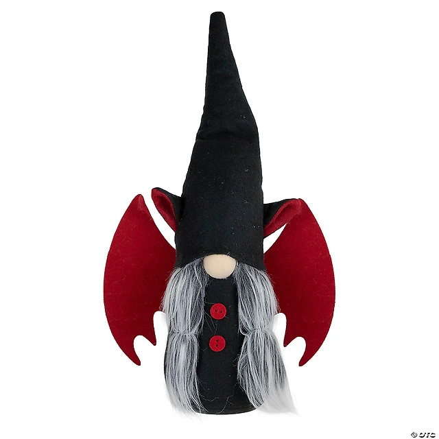17" Black and Red Halloween Girl Gnome with Bat Wings