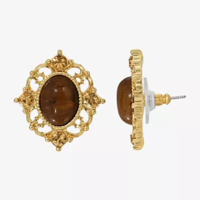 1928 Gold Tone Brown Crystal 1 Inch Stud Earrings