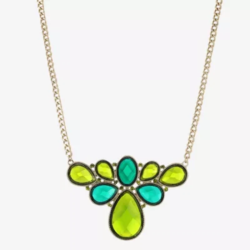 1928 Gold-Tone Womens Green 16 Inch Collar Necklace1928 Gold-Tone Womens Green 16 Inch Collar Necklace