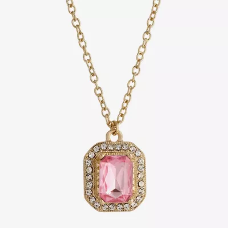 1928 Gold Tone Womens Pink Crystal Alloy 16 Inch Pendant Necklace1928 Gold Tone Womens Pink Crystal Alloy 16 Inch Pendant Necklace