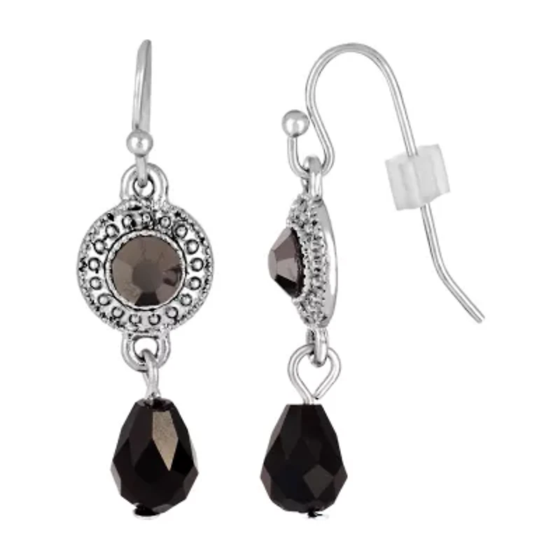 1928 Silver Tone Womens Gray Crystal Drop Earrings