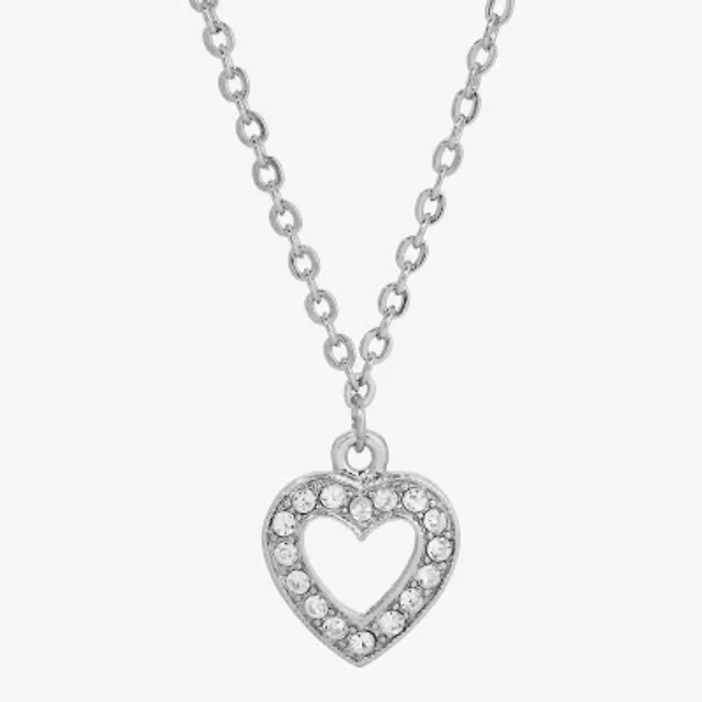 1928 Silver Tone Womens Crystal Alloy Heart 16 Inch Pendant Necklace