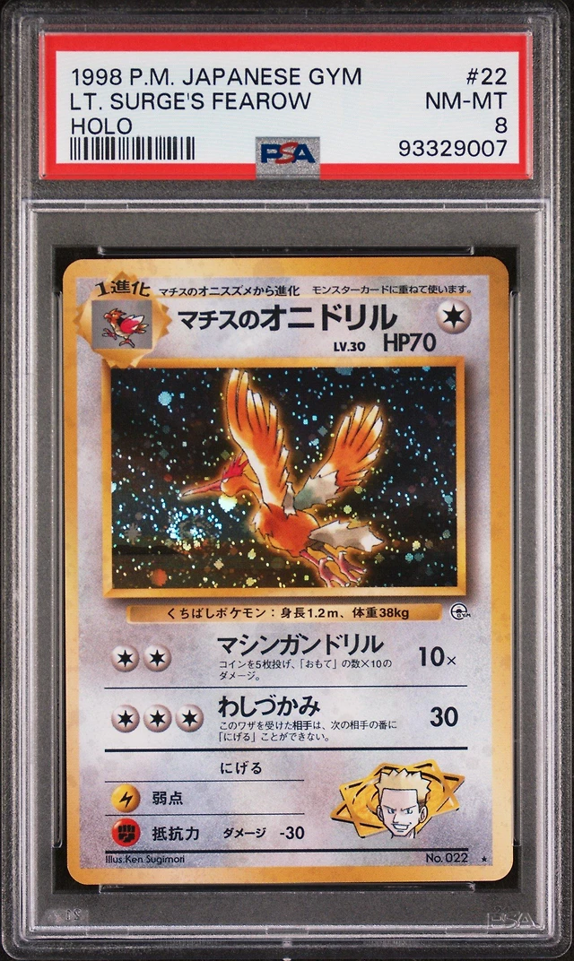1998 Pokemon Japanese Gym 22 Lt. Surge's Fearow-holo PSA 8