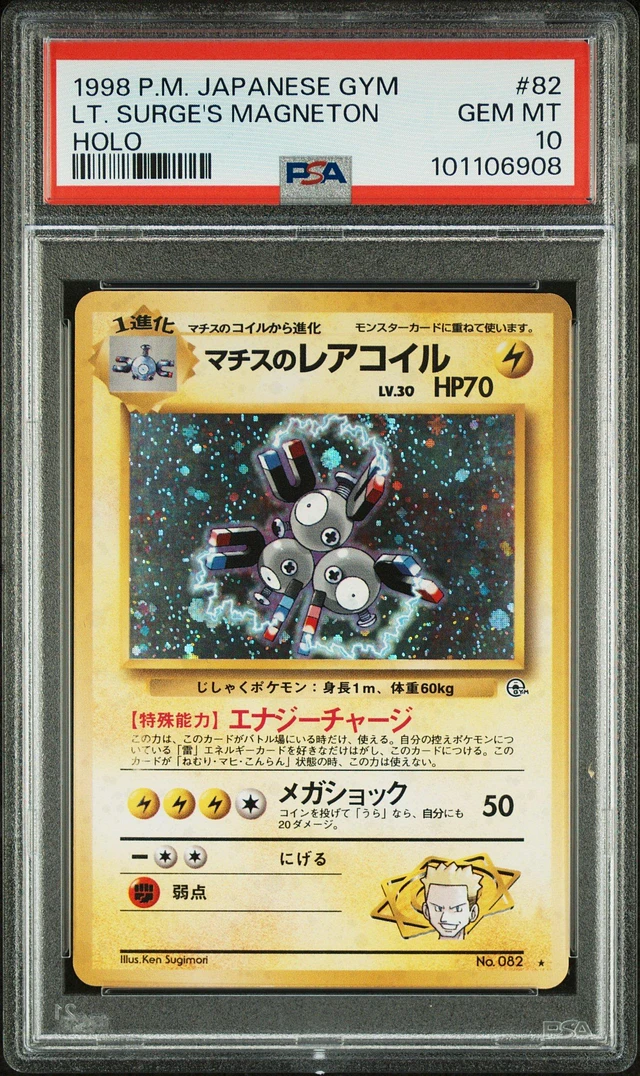 1998 Pokemon Japanese Gym 82 Lt. Surge's Magneton-holo PSA