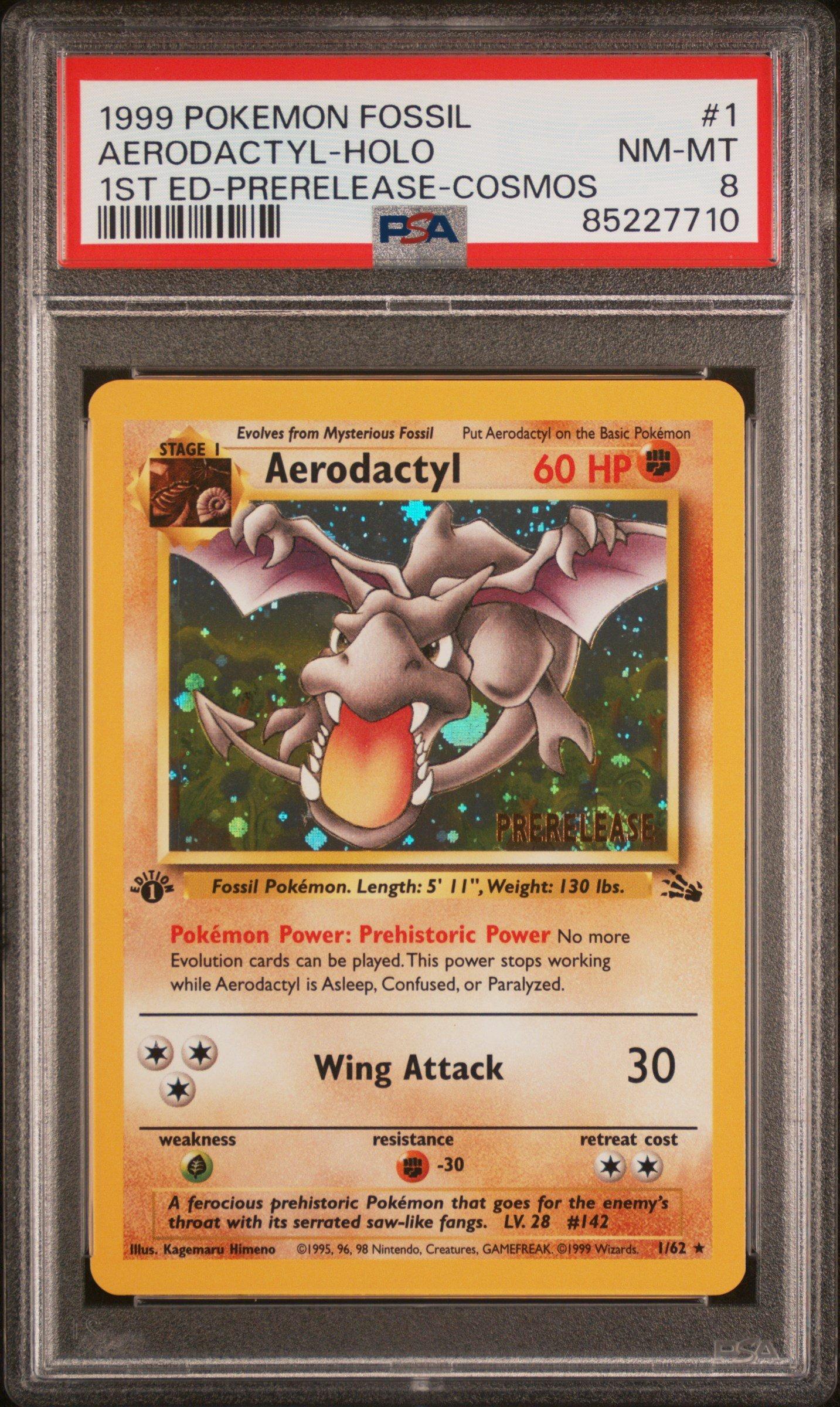 1999 Pokemon Fossil 1 Aerodactyl-holo 1st Edition-prerelease-cosmos PSA 8