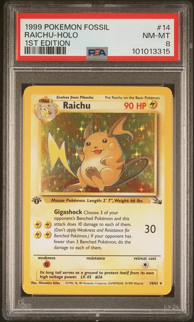 1999 Pokemon Fossil 14 Raichu-holo 1st Edition PSA