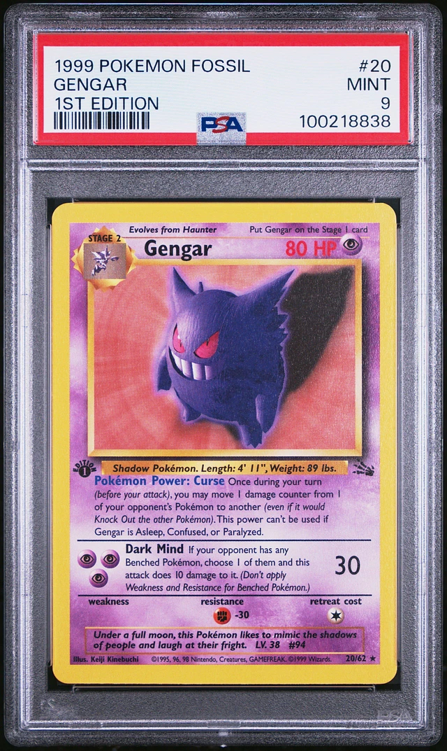 1999 Pokemon Fossil 20 Gengar 1st Edition PSA 9