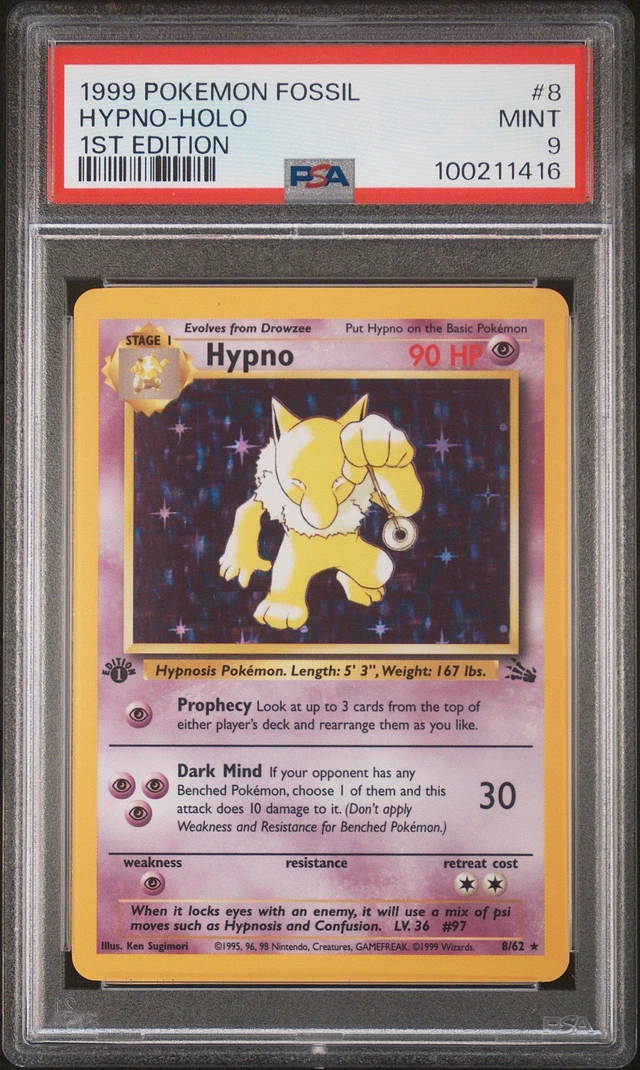 1999 Pokemon Fossil 8 Hypno-holo 1st Edition PSA