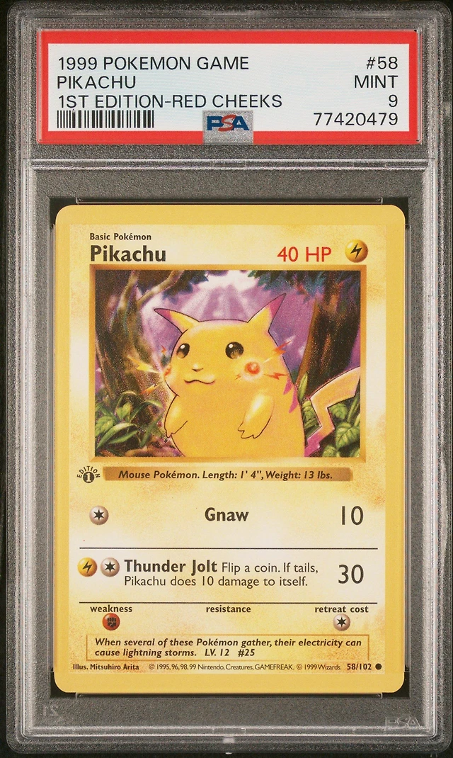 1999 Pokemon Game 58 Pikachu 1st Edition- Cheeks PSA 9