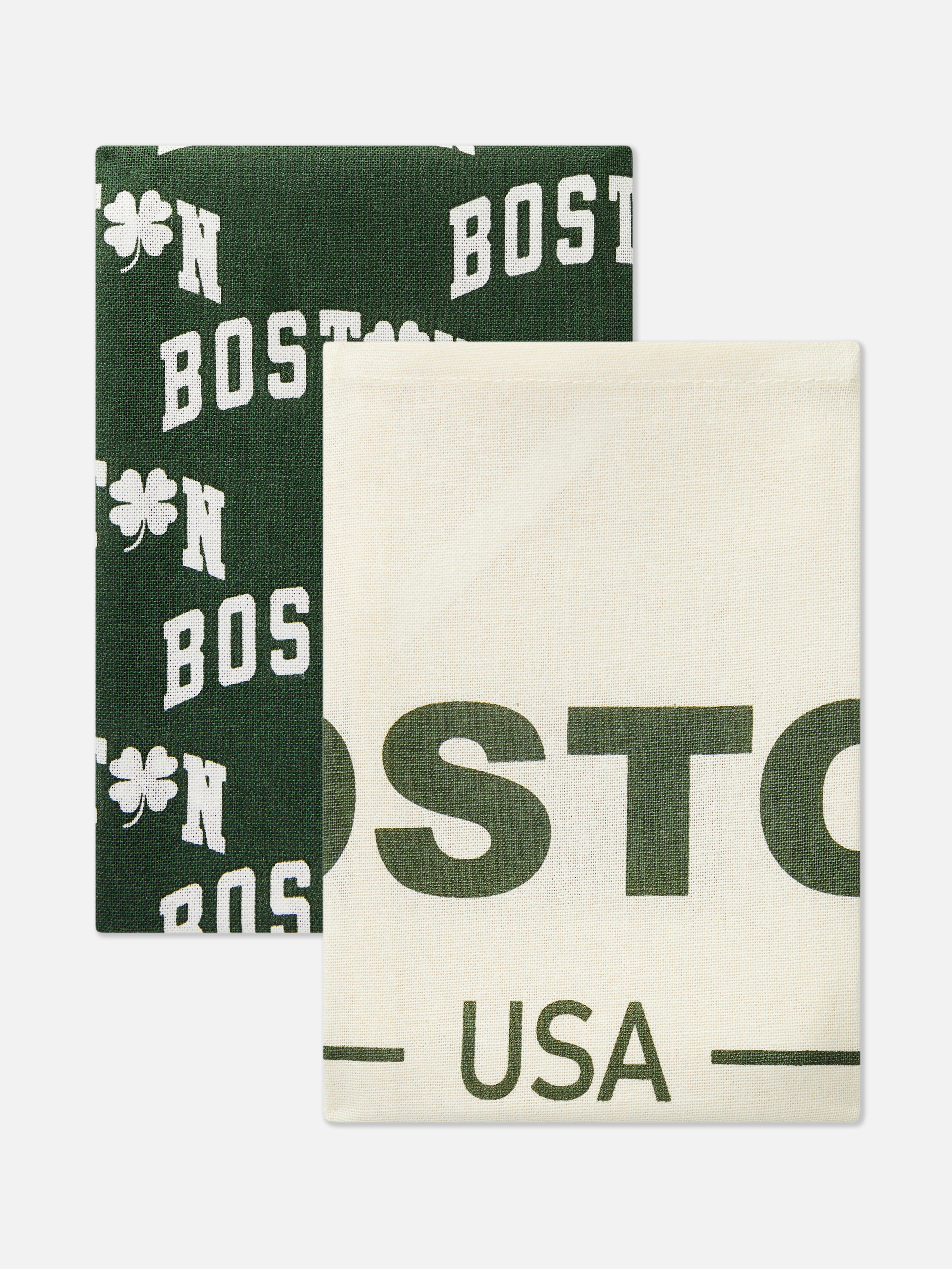 Two cotton dish cloths with Boston USA typography