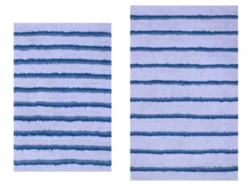 2 PC YARN DYED BATH RUG SET 17x24 & 21x34 CANDY STRIPE OCEAN BLUE TWO INDIA Imported Product Specifications 17 X 24 & 21 X 34 Material & Care Cotton Machine washable, gentle cycle