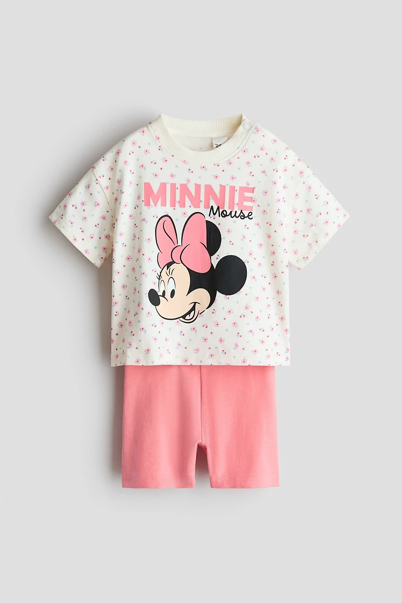 Set in soft cotton jersey with a top and bike shorts, both with a printed design. Top with a ribbed round neckline with snap fasteners on one side (sizes 2–4Y without snap fasteners), and dropped shoulders. Bike shorts with adjustable elastic at waistband.