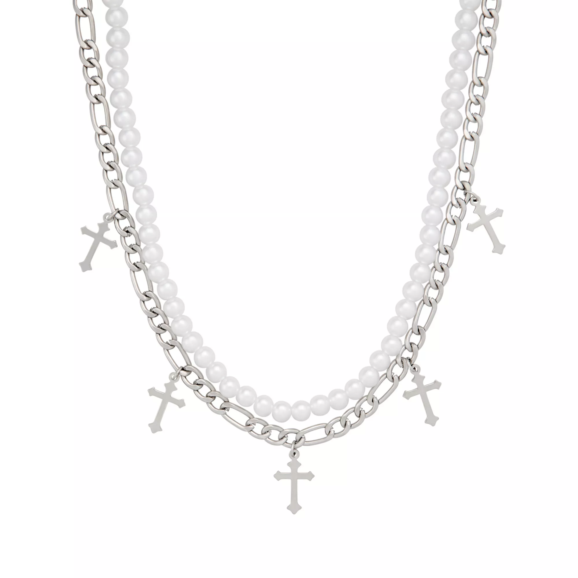2-Row Pearl Cross Chain Necklace