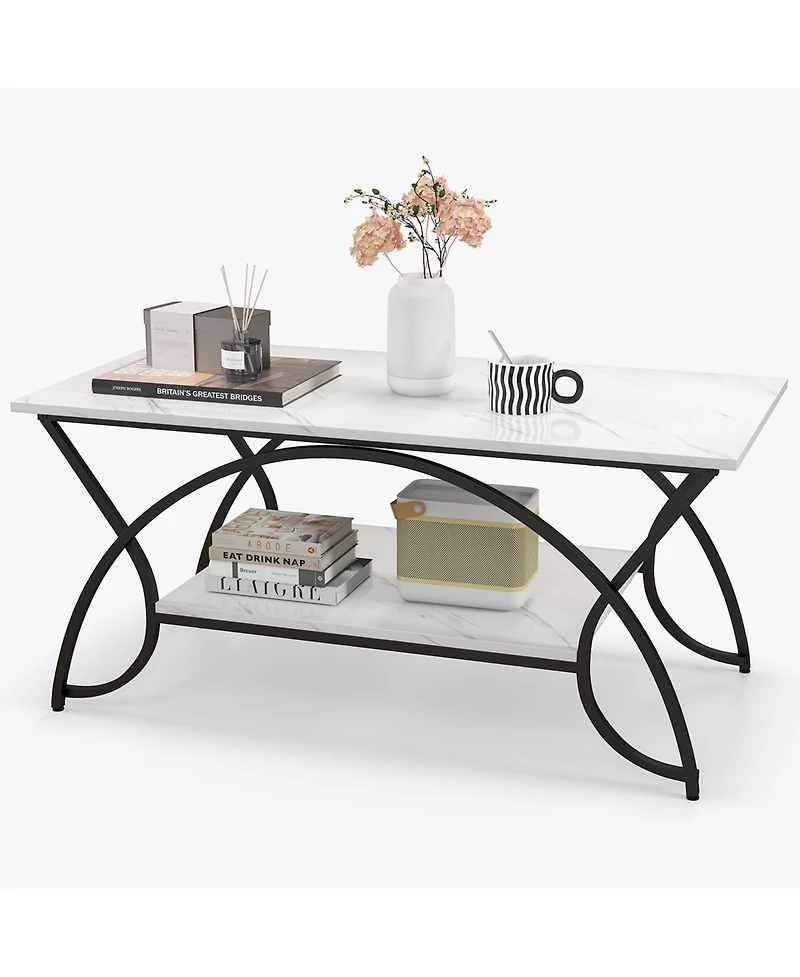 2-Tier Industrial Coffee Table Rectangular Cocktail with Storage Shelf