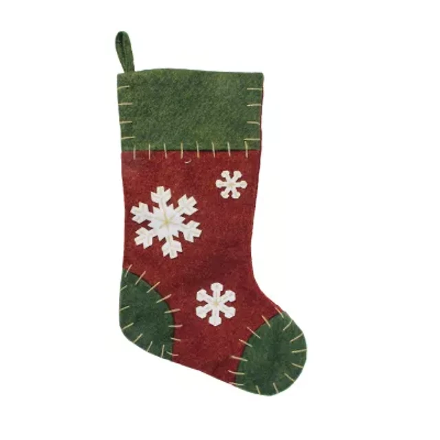 20'' Green and Red Snowflake Applique Christmas Stocking with Blanket Stitching