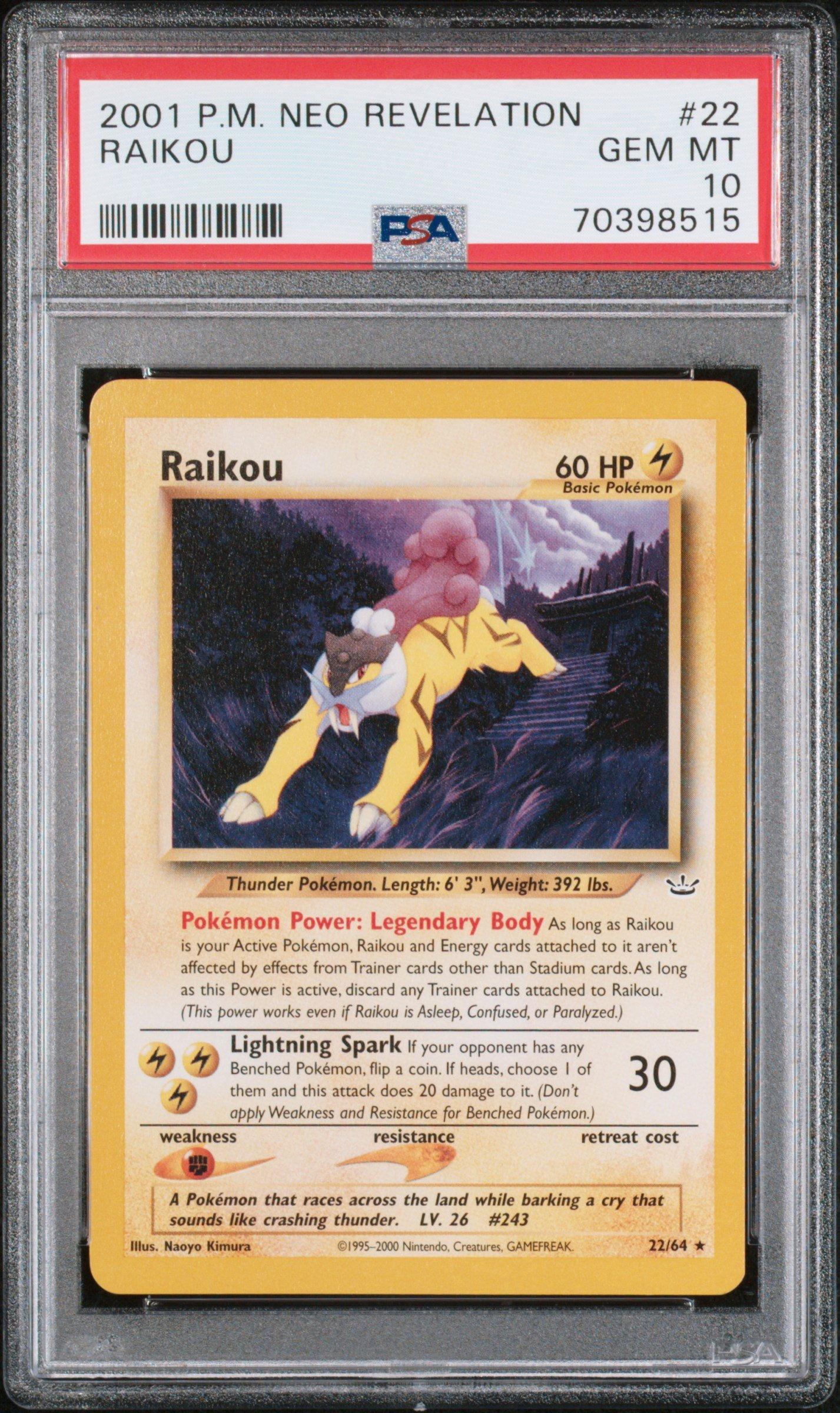 2001 Pokemon Neo Revelation 22 Raikou PSA 10