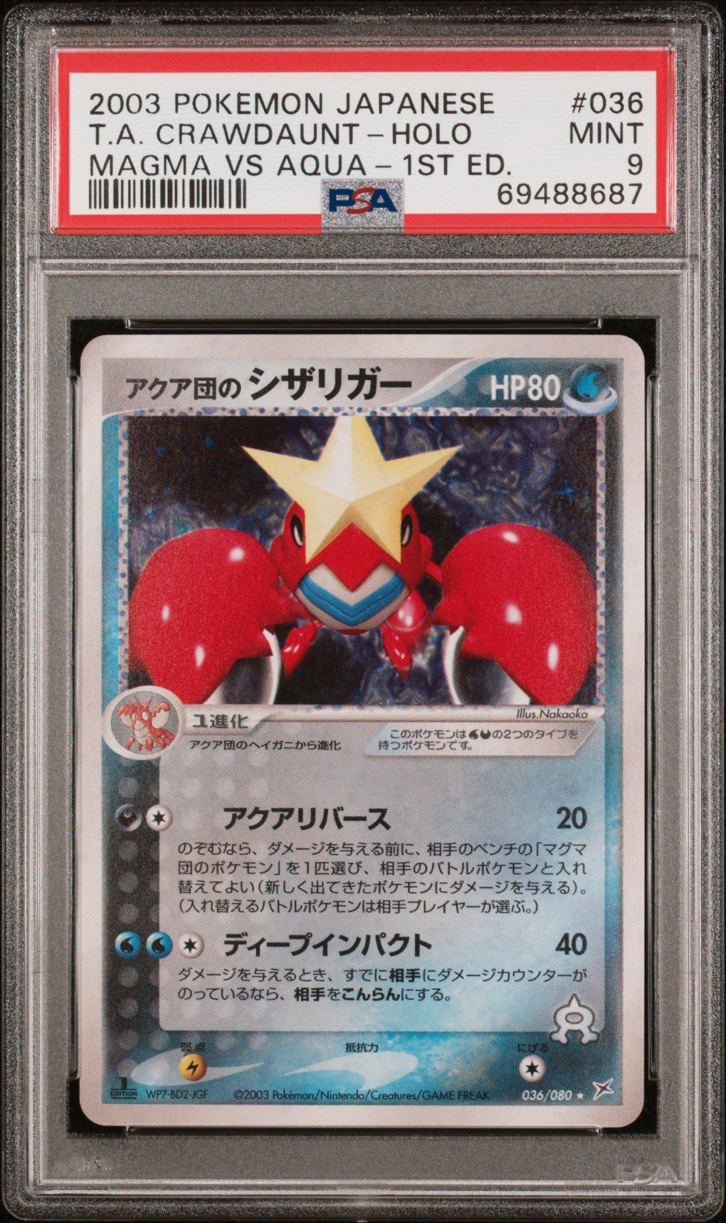 2003 Pokemon Japanese Magma Vs Aqua 036 Team Aqua's Crawdaunt-holo 1st Edition PSA 92003 Pokemon Japanese Magma Vs Aqua 036 Team Aqua's Crawdaunt-holo 1st Edition PSA 9