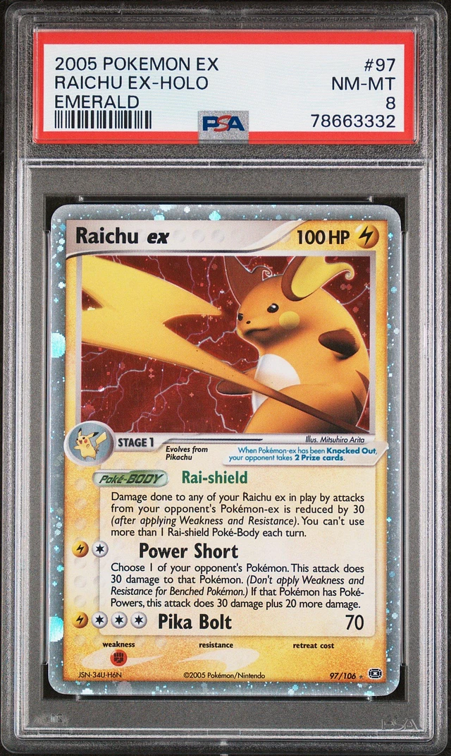 2005 Pokemon Ex Emerald 97 Raichu Ex PSA 8