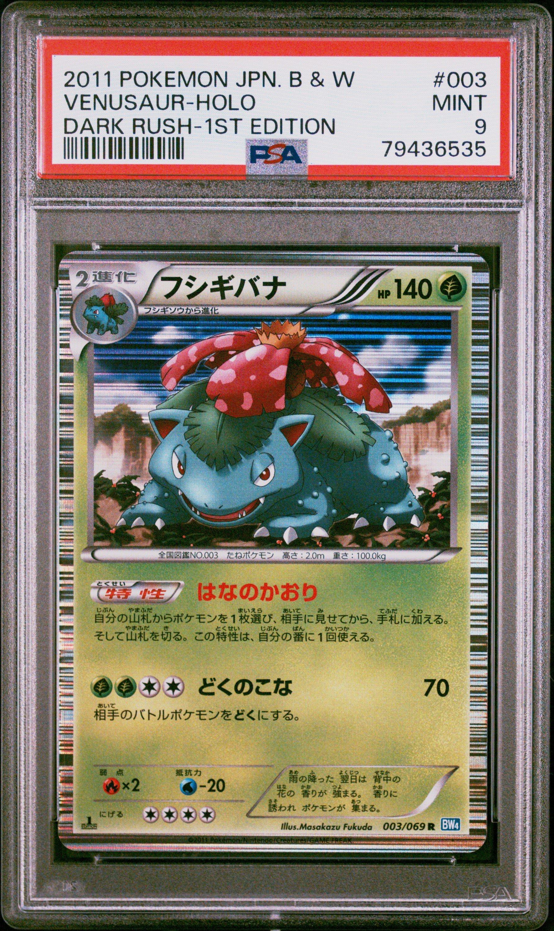 2011 Pokemon Japanese Black & White Dark Rush 003 Venusaur-holo 1st Edition PSA 9