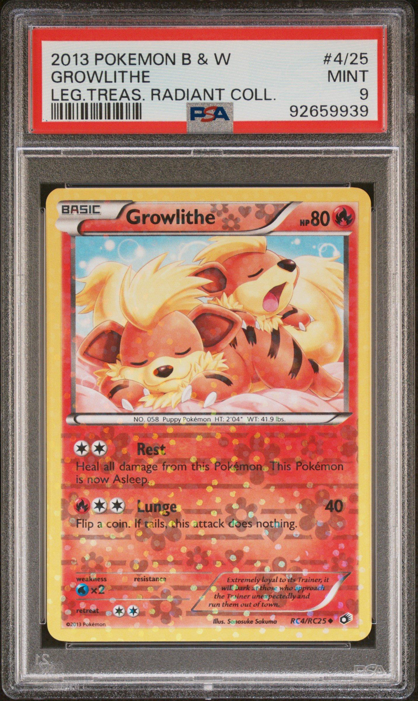 2013 Pokemon Black & White Legendary Treasures Radiant Collection 4/25 Growlithe PSA 9