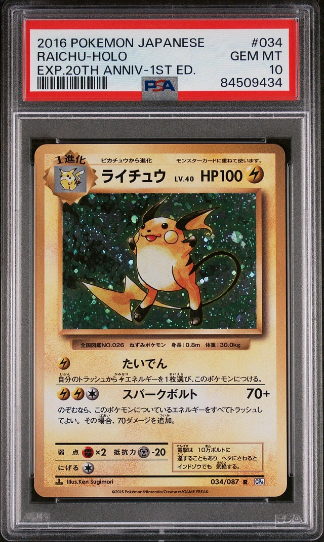 2016 Pokemon Japanese Expansion 20th Anniversary 034 Raichu PSA 10
