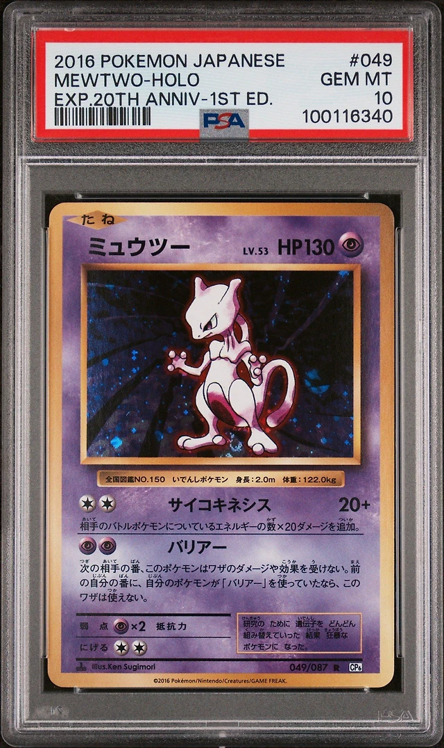 2016 Pokemon Japanese Expansion 20th Anniversary 049 Mewtwo-holo 1st Edition PSA 10