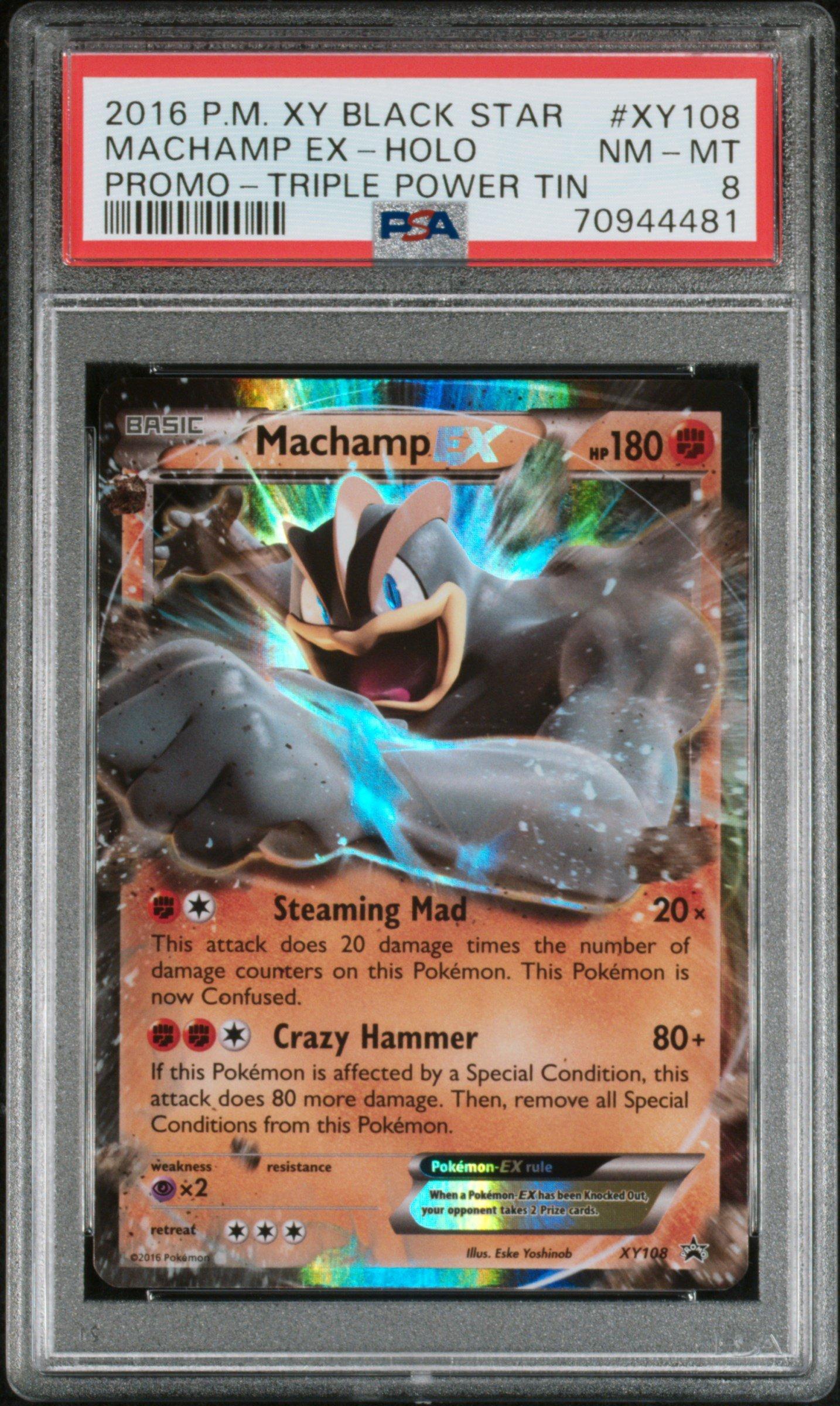 2016 Pokemon Xy Black Star Promo Xy108 Machamp Ex-holo Triple Power Tin PSA 8