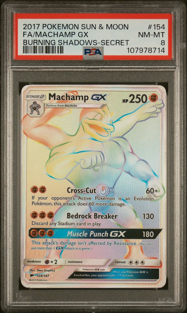 2017 Pokemon Sun & Moon Burning Shadows 154 Full Art/machamp Gx Secret PSA