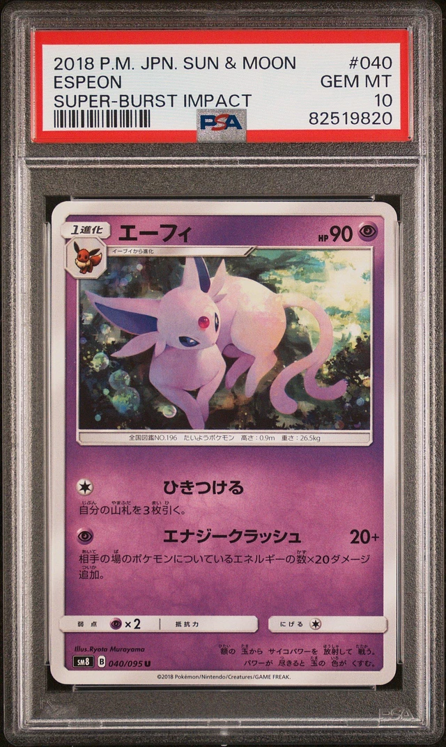 2018 Pokemon Japanese Sun & Moon Super-burst Impact 040 Espeon PSA 10