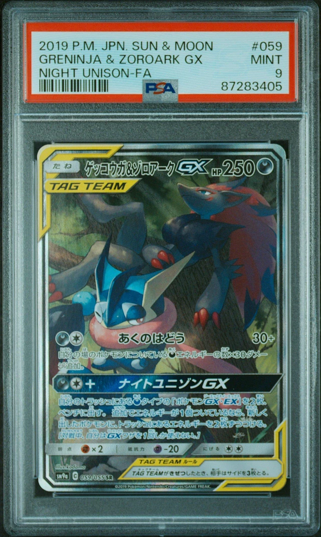 2019 Pokemon Japanese Sun & Moon Strength Expansion Pack Night Unison 059 Full Art/greninja & Zoroark Gx PSA 9