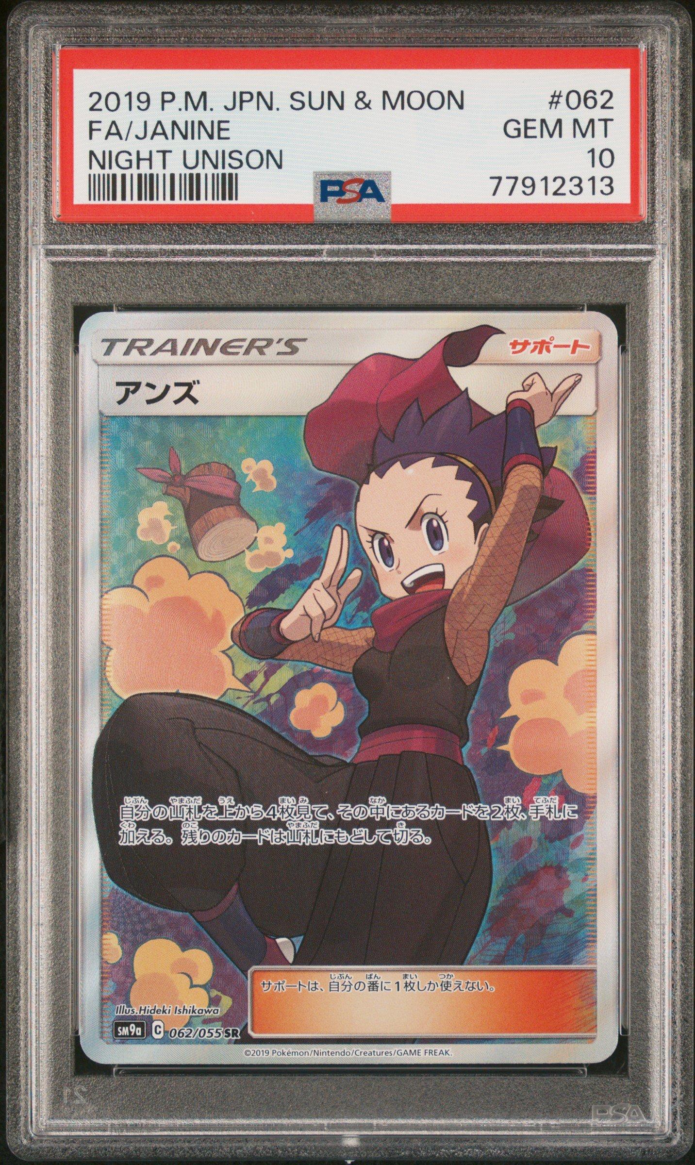 2019 Pokemon Japanese Sun & Moon Strength Expansion Pack Night Unison 062 Full Art/janine PSA 10