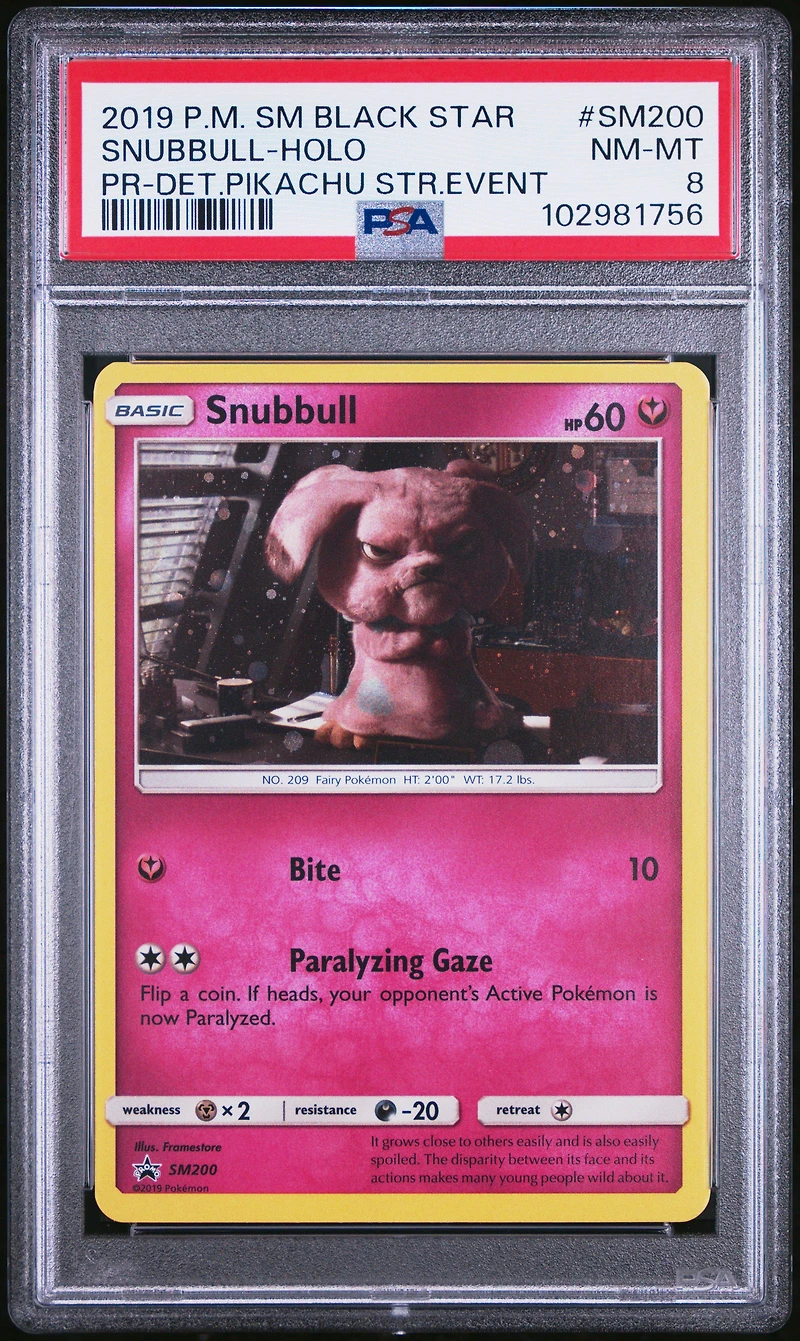2019 Pokemon Sm Black Star Promo Sm200 Snubbull-holo Detective Pikachu Store Event PSA 8