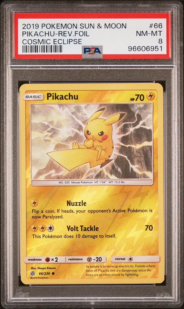 2019 Pokemon Sun & Moon Cosmic Eclipse 66 Pikachu-reverse Foil PSA 8