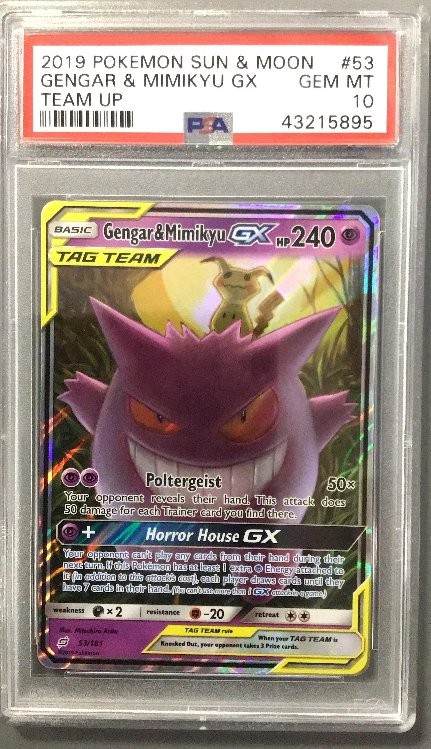 2019 Pokemon Sun & Moon Team Up Gengar & Mimikyu Gx PSA