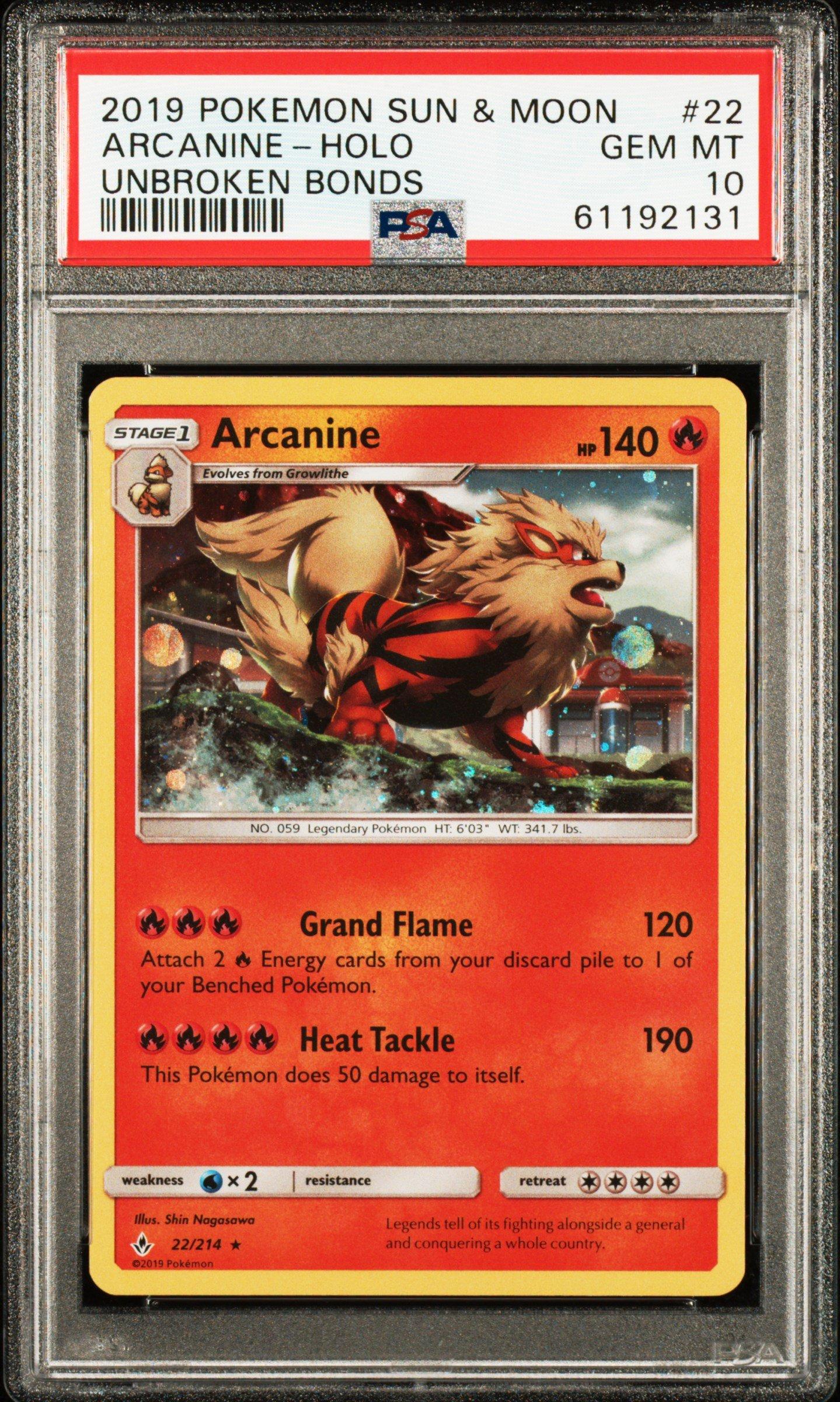 2019 Pokemon Sun & Moon Unbroken Bonds 22 Arcanine PSA 10
