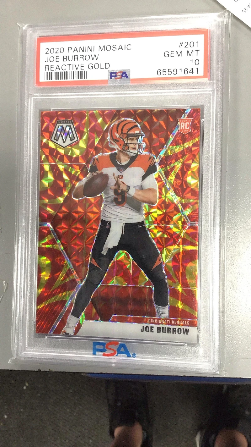 2020 Panini Mosaic 201 Joe Burrow Reactive Gold PSA 102020 Panini Mosaic 201 Joe Burrow Reactive Gold PSA 10