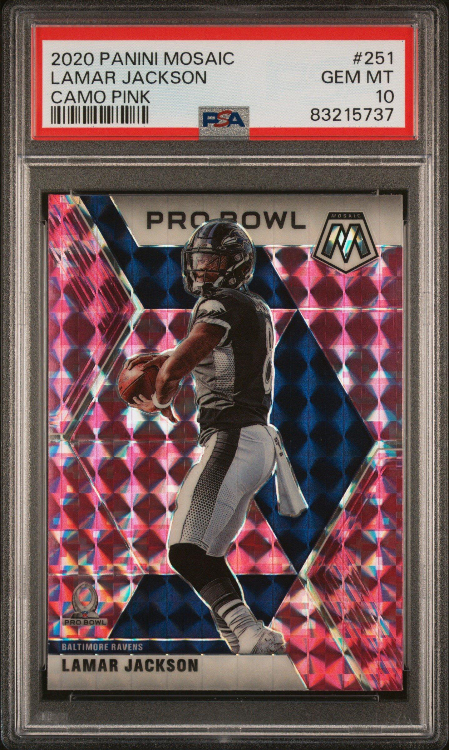 2020 Panini Mosaic 251 Lamar Jackson Camo Pink PSA 10