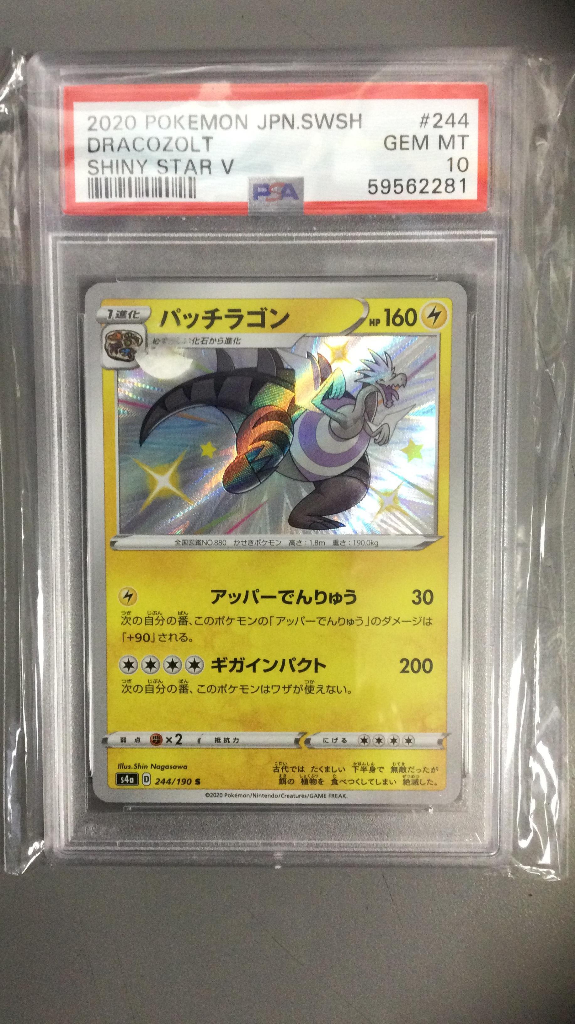 2020 Pokemon Japanese Sword & Shield Shiny Star V 244 Dracozolt PSA 10
