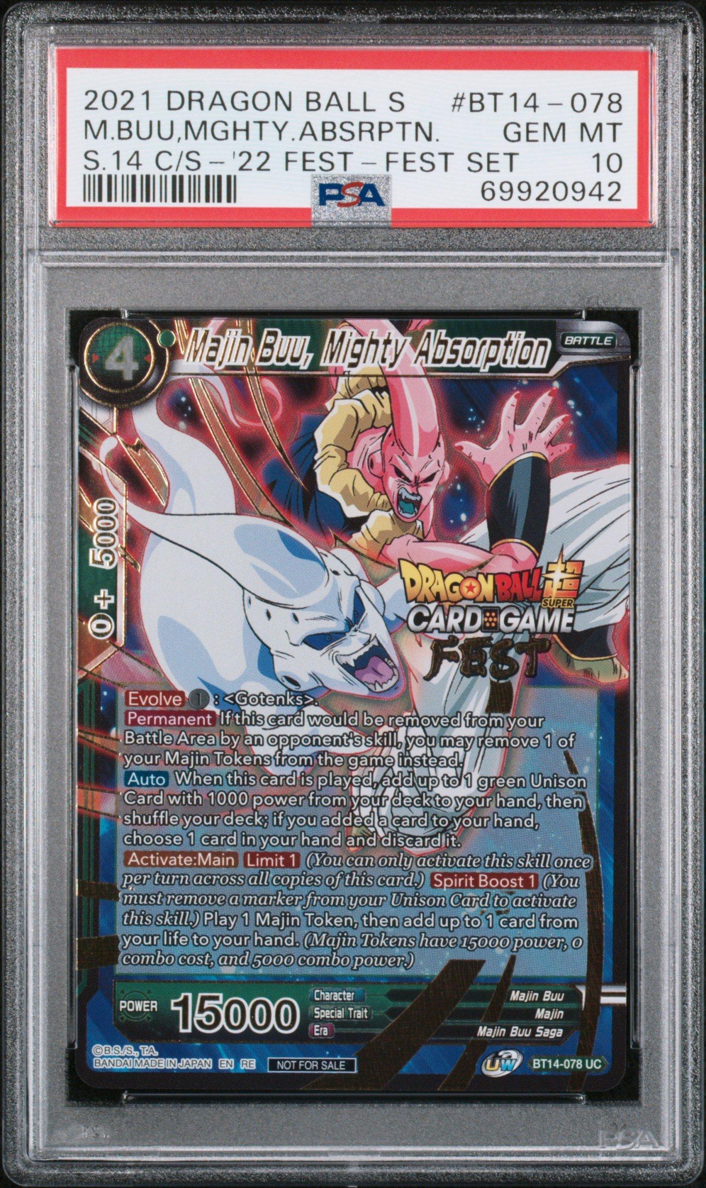 2021 Dragon Ball Super Card Game Series 14 Cross Spirits Bt14-078 Majin Buu, Mighty Absorption 2022 Dragon Ball Super Card Game Fest-fest Set PSA 10